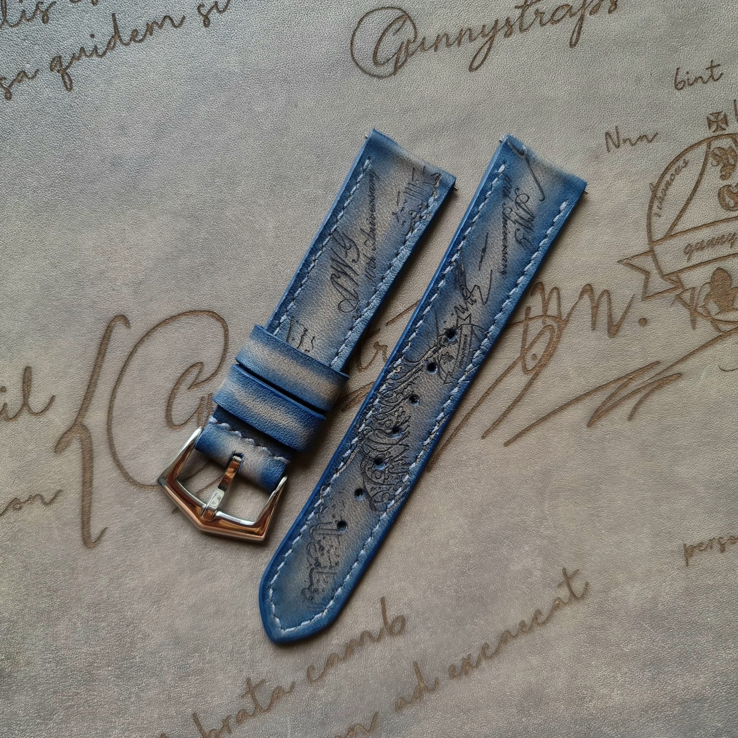 Genuine Leather colored Grey Blue gradient with fumee finishing