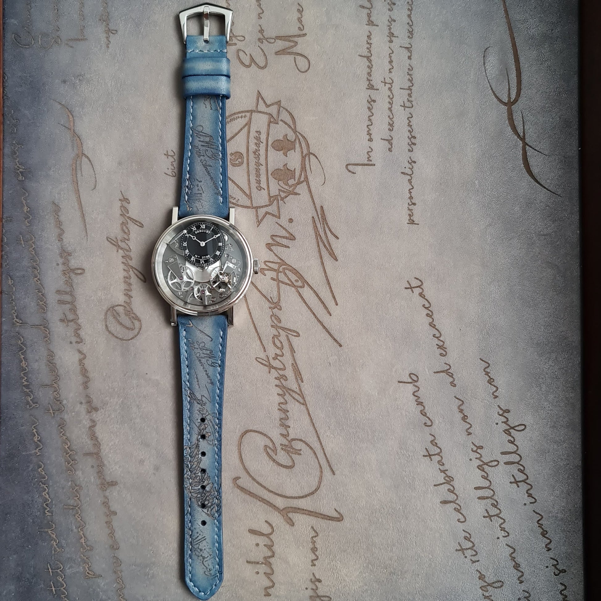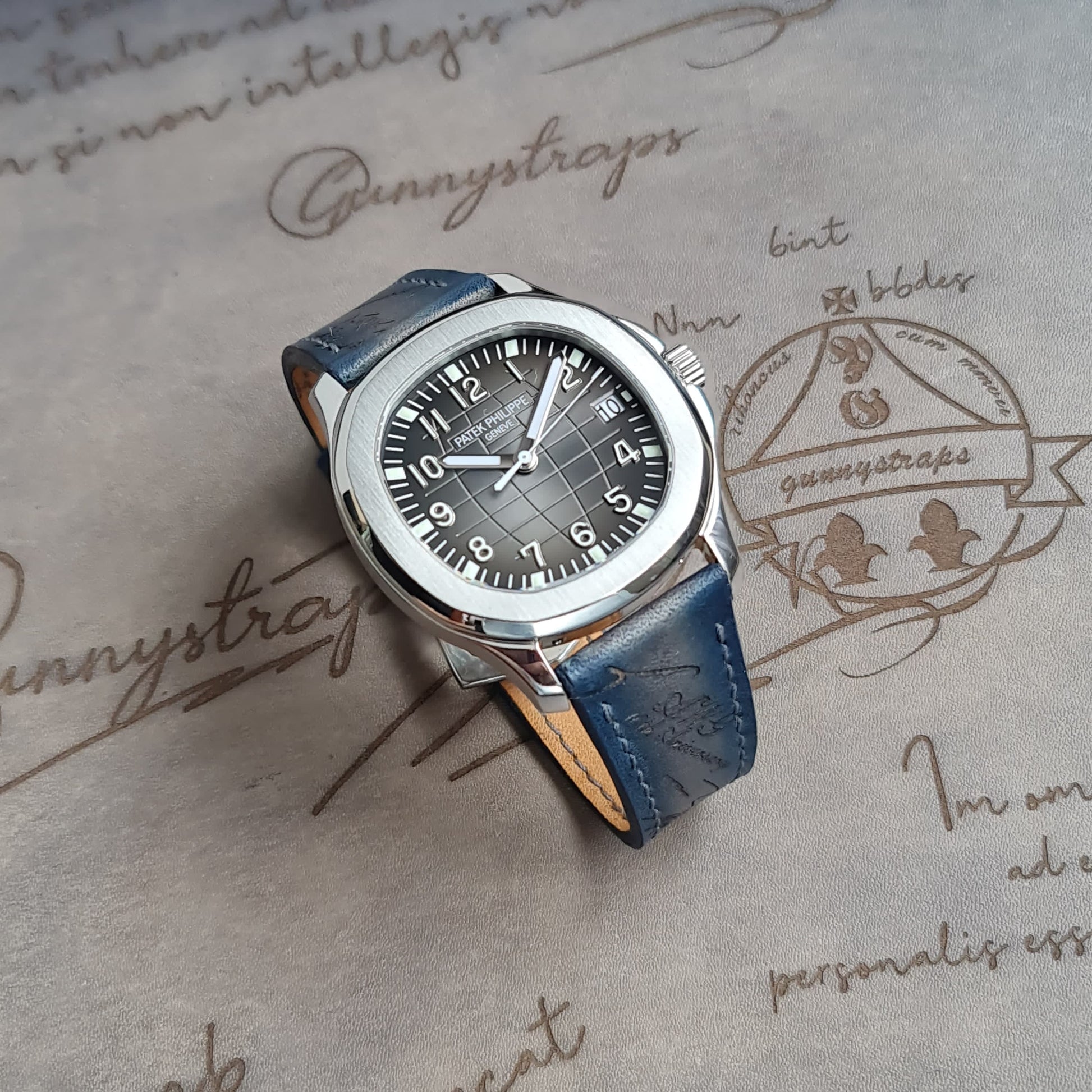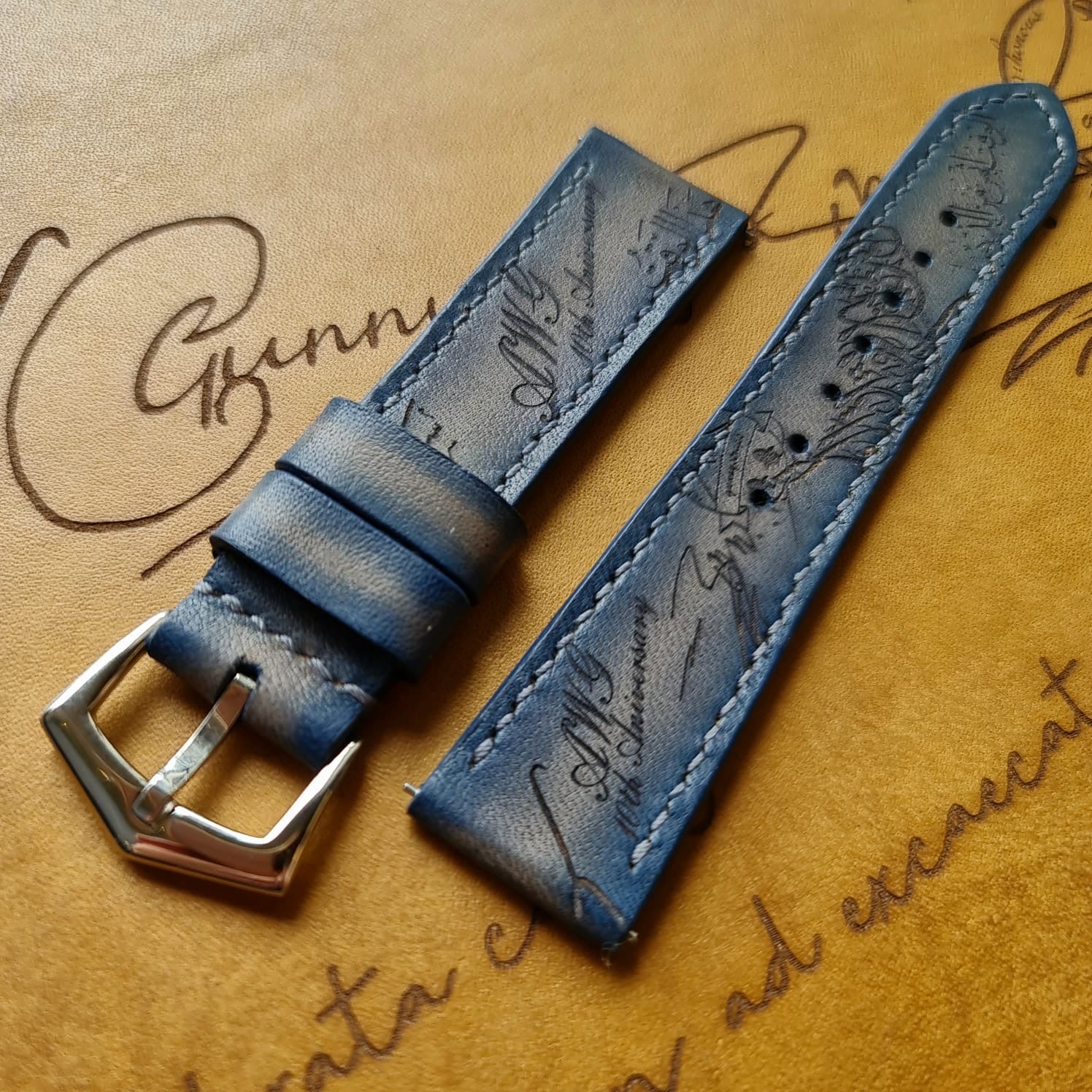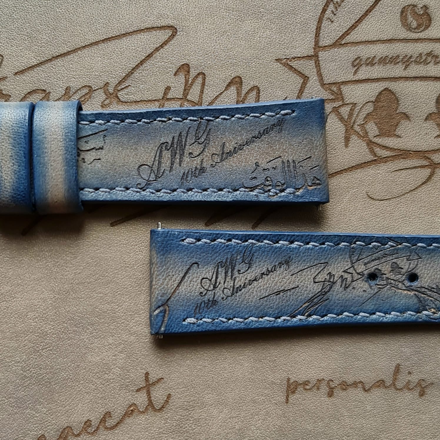 مع بدء احتفالاتنا بالذكرى السنوية العاشرة لـ AWG - يسعدنا إطلاق 100 قطعة حصرية فقط من ستراب مصنوعمن الجلد باللون الأزرق/الرمادي "فومي"