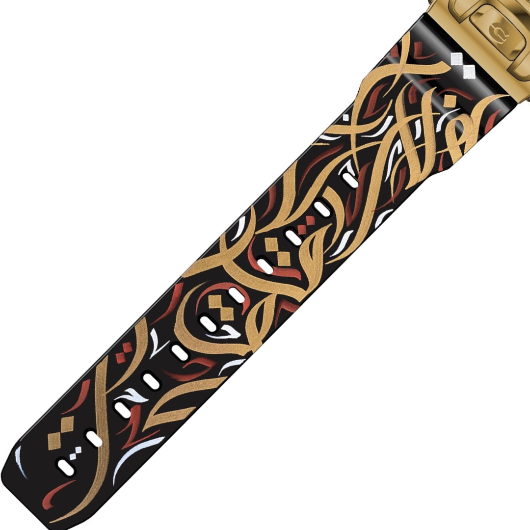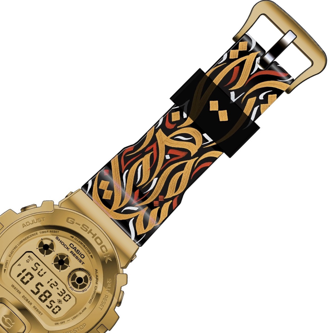 We are announcing a very special GM6900G-9 in collaboration with Dia Allami, a calligrapher in Dubai who won the competition of designing a very unique and limited strap for our watches.