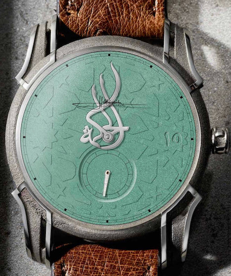 Dial:Green oxidized titanium Embossed mashrabia pattern with frosted finish Dark gray pad-printed subdial + minute markers